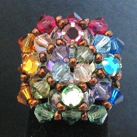 Une bague aux 4 strass colorés, en contraste avec les rocailles bronze.